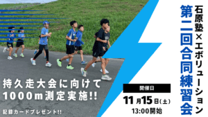 今回は、かけっこ教室石原塾の皆様に、陸上競技にもっと触れて欲しいと思い、Evolutionとの合同練習会を企画しました。